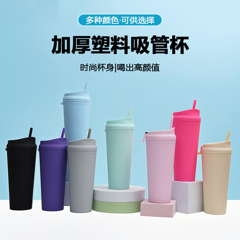 国境を越えた工場から直接供給される二層プラスチックストローカップ、ポータブルフリップカバー、大容量のラバーペイントつや消しカップ