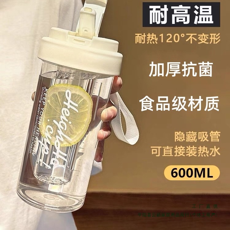 高温耐性ウォーターカップ女の子のための新しい 2024 高品質ストローカップ学生ポータブル茶水分離プラスチックカップ男性のための