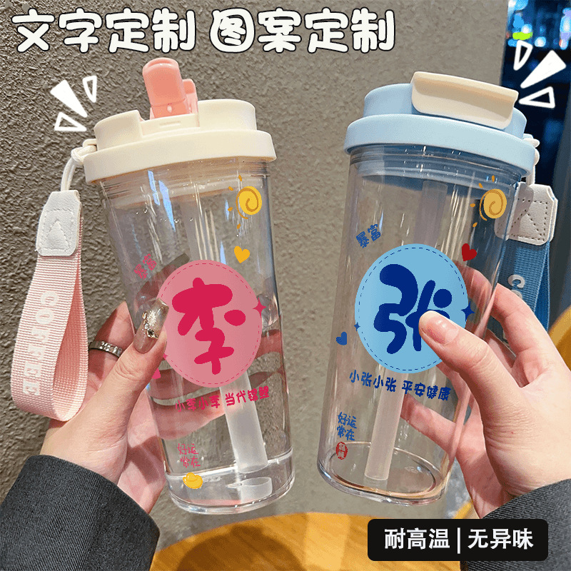 2025百家姓夏天女生情侣可爱宿舍高颜值新款塑料双饮吸管水杯礼物