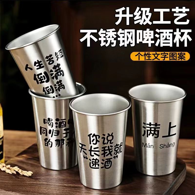 韓国風304ステンレス鋼カップ バーベキュー屋 ロースト肉屋 ビールカップ 鍋料理店 レストラン キャンプ用 冷たい飲み物用カップ ポータブル