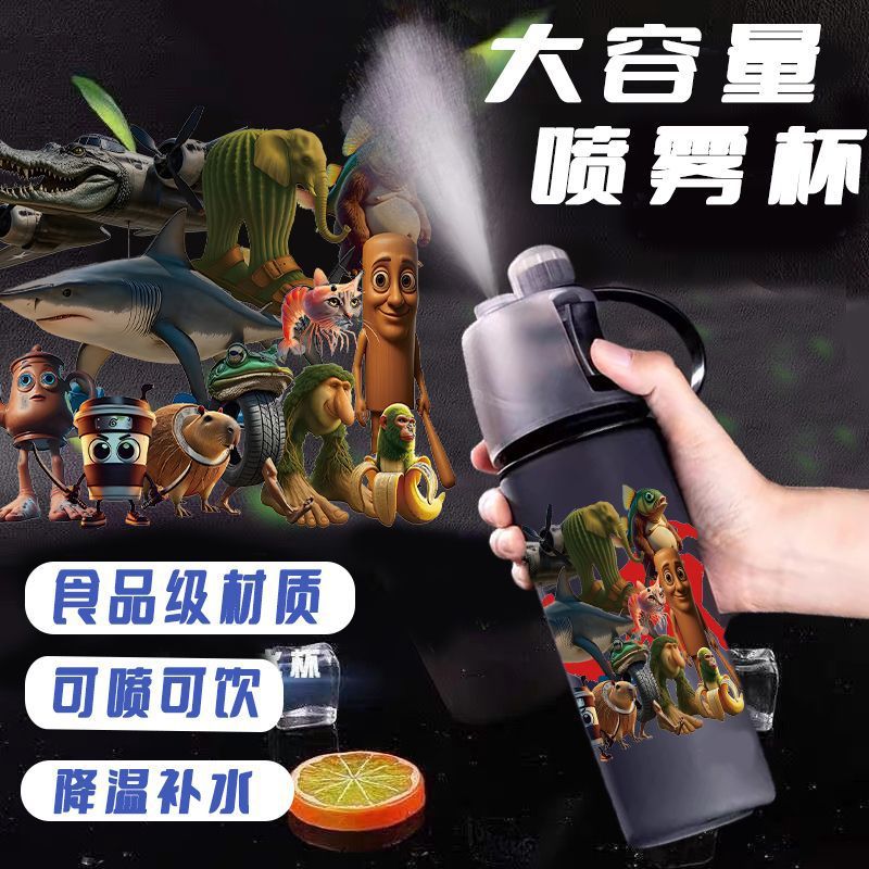 喷雾运动水杯吸管女高颜值儿童杯子夏季大容量户外学生上学喷水壶