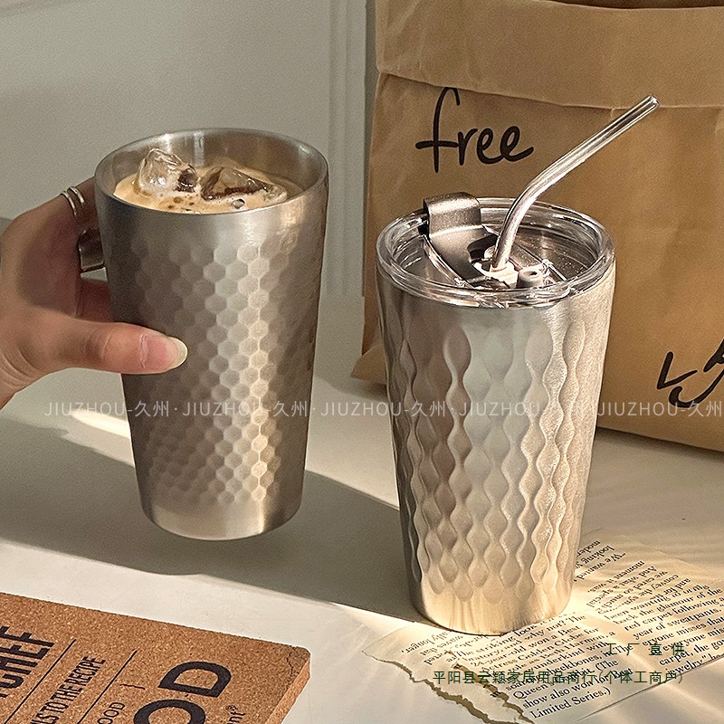 工業風二重アメリカ304ステンレスコーヒーカップ付き保温カップ蓋付き抗熱ストロー付きコップ