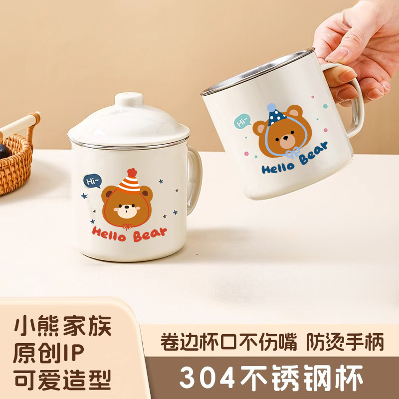 304 ステンレス鋼ペイントカップ家庭用漫画幼稚園子供の特別な飲料水蓋ハンドルオープンカップ