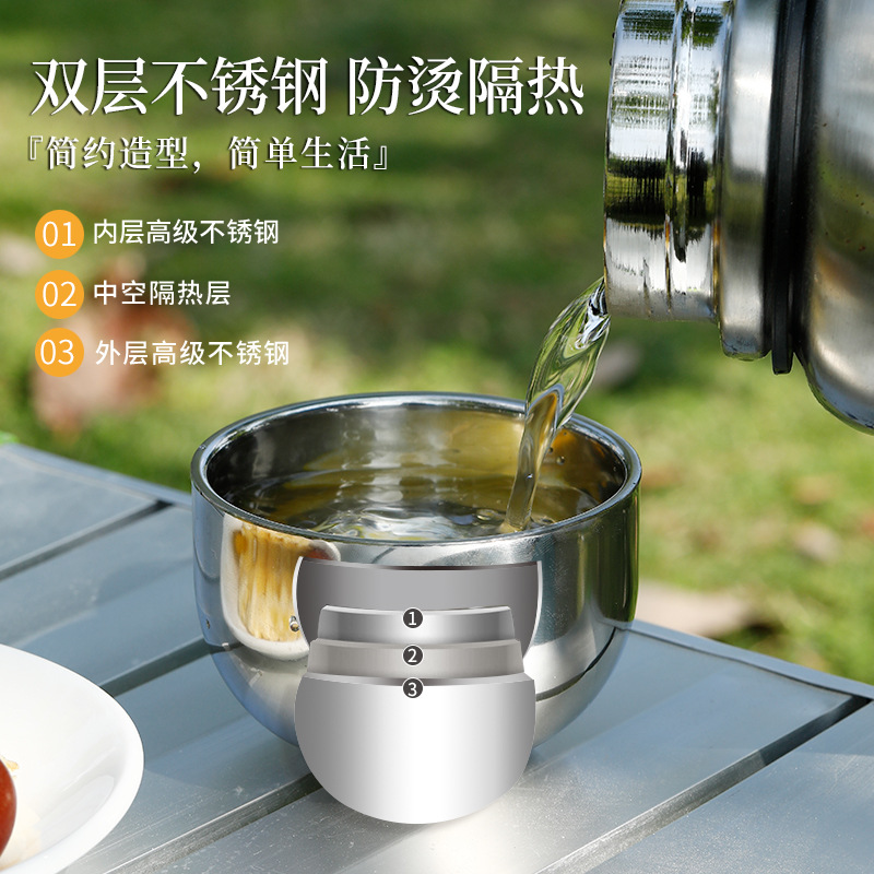 ステンレス製アウトドアカップ、ティーカップ、シェービングクリームボウル、中空、火傷防止、越境専用フォームボウル、蓋付き、火傷防止、携帯用