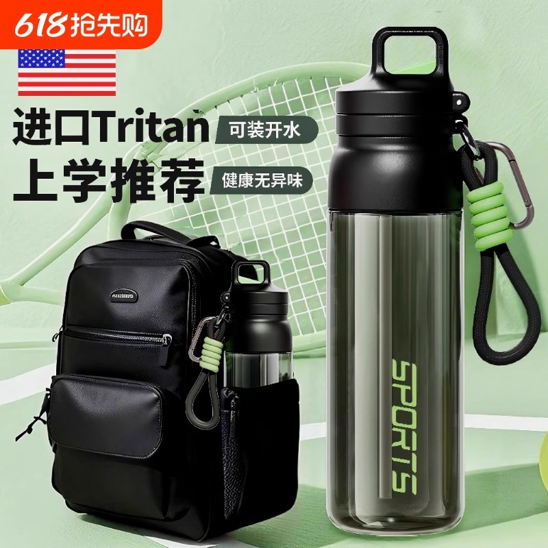 旅行アウトドアスポーツ水カップtritan耐高温水筒学生学校専用高颜値プラスチックストローカップ