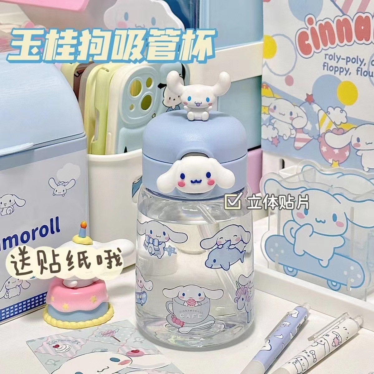 小紅本携帯かわいい学生女子学生プラスチック高颜値ストローカップさくらんぼ子犬夏すぐコップ