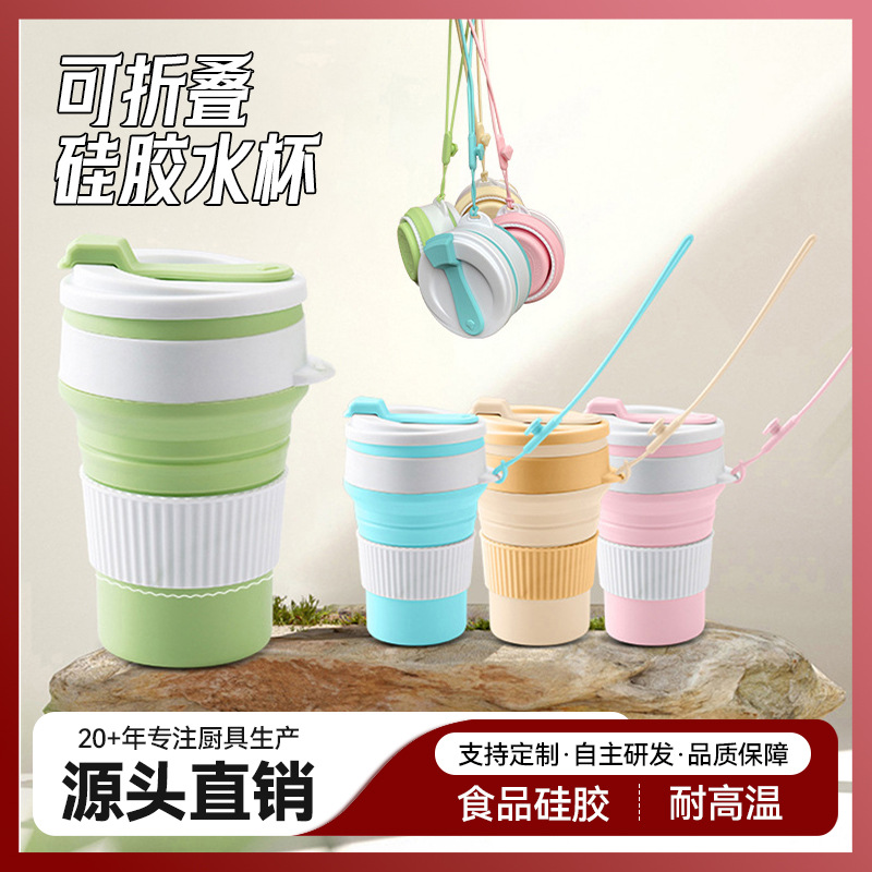 定制户外食品级折叠水杯 耐高温易收纳运动旅行骑行压缩硅胶水杯