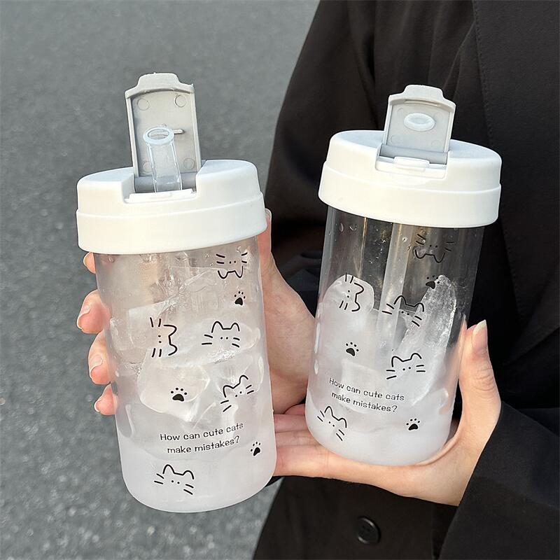 新しい ins ウォーターカップ女の子のための高価値カップ夏のストローシンプルな学生ポータブル大容量プラスチックカップ
