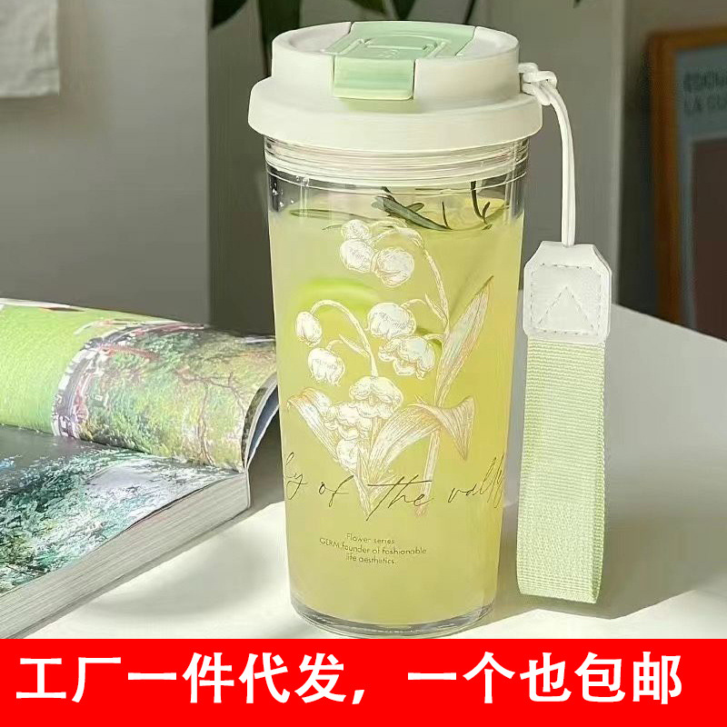 すずらんのコップの新型の女子学生の高い顔の値のストローの随行するプラスチックのコップの高級感は軽くて豪華です。