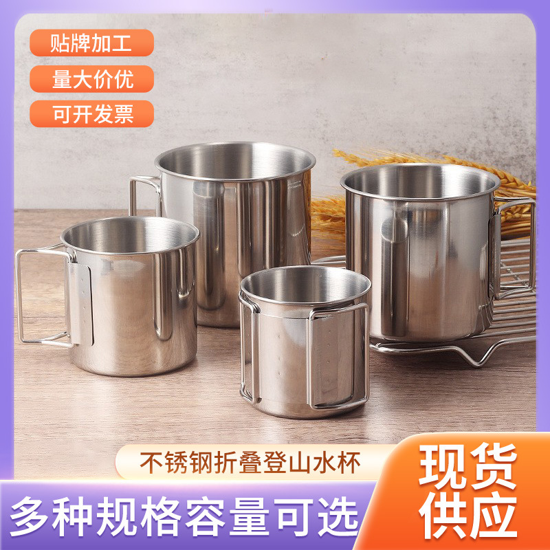 ステンレスアウトドアスポーツ折りたたみカップ登山カップキャンプポータブルコーヒーカップティーカップ卸売印刷可能ロゴ