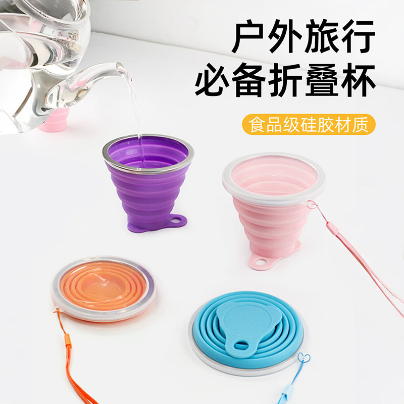 折り畳みコップシリカゲル屋外旅行うがいコップ伸縮可能旅行携帯キャンプ純色圧縮コップ