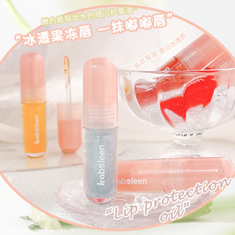 Kobeleen リップケアオイル水光ゼリーリップピュアディザイアファイングリッターリップグロスクリア保湿ガールリップスティック卸売