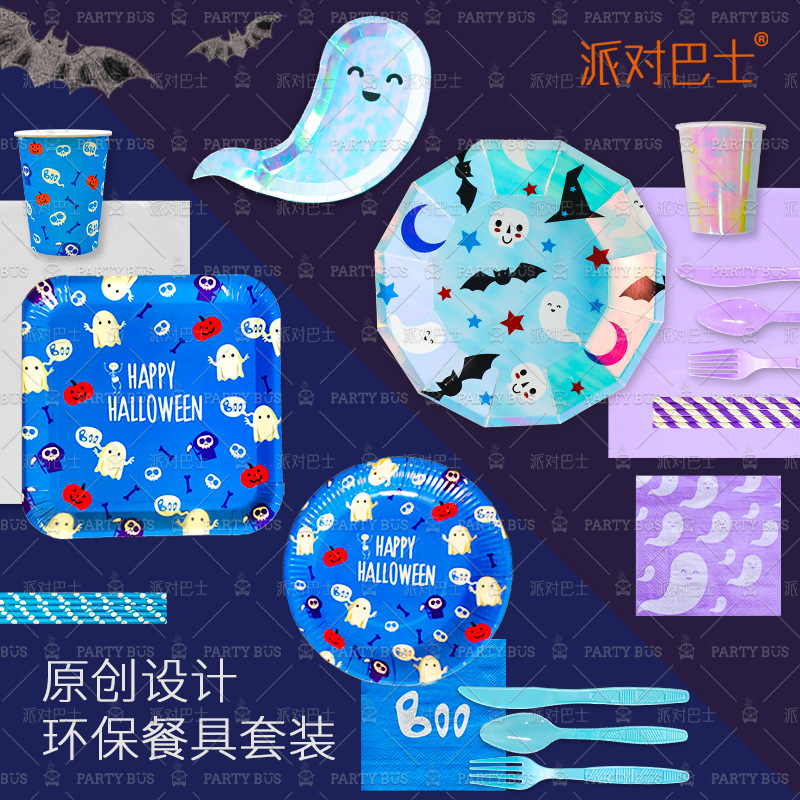 パーティーバスは国境を越えた使い捨てパーティー用品紙皿紙カップタオルテーブルクロスコウモリ幽霊夢万聖