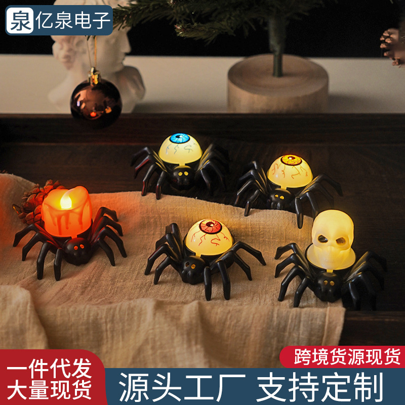 国境を越えたハロウィーンのクモの明かりのクモの背中の目の明かりのledのろうそくの明かりのパーティーの雰囲気の配置の装飾の小さい夜の明かり
