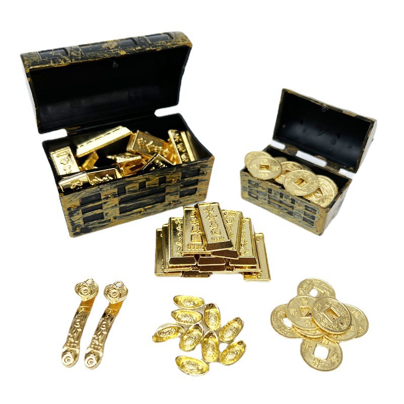 人形屋dollhouseミニチュアシーン置物金元宝銅銭如意金条宝箱