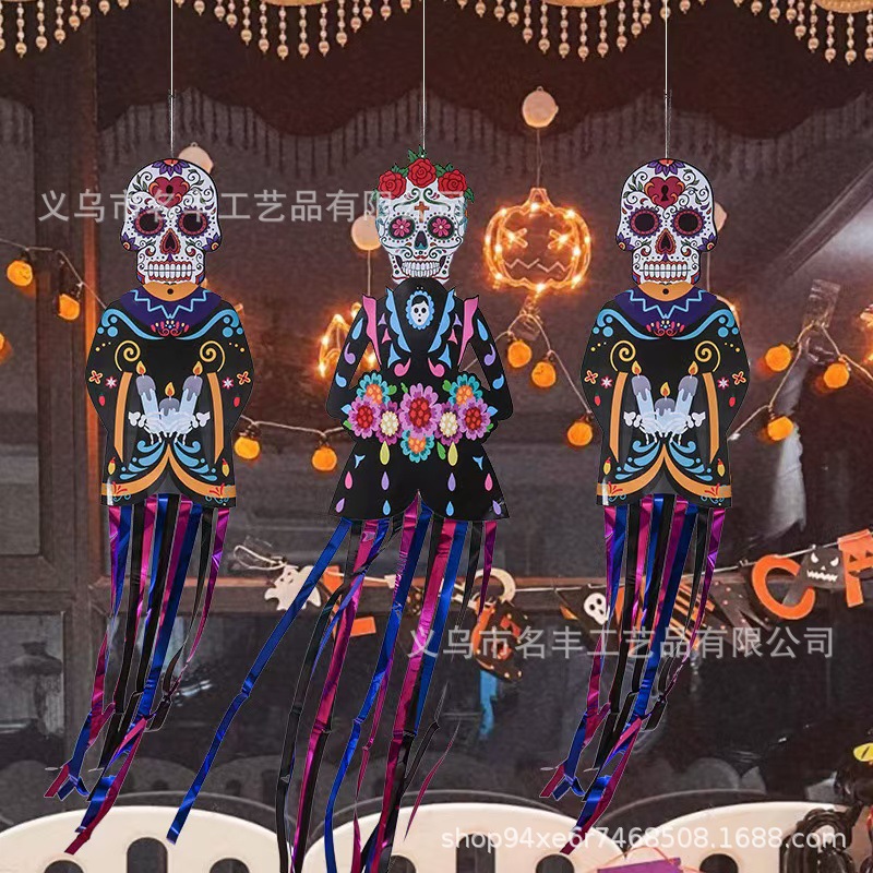 ハロウィン吊り下げゴーストチャーム染血ホラー頭蓋骨アレンジメント装飾小道具血色ガーゼシーンポーチテラス