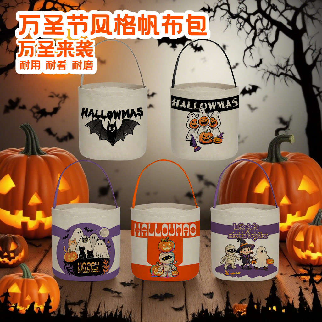 クロスボーダーハロウィンシリンダーキャンバスバッグハロウィン幼稚園ホリデーパーティーキャンディスナックポータブル包装袋