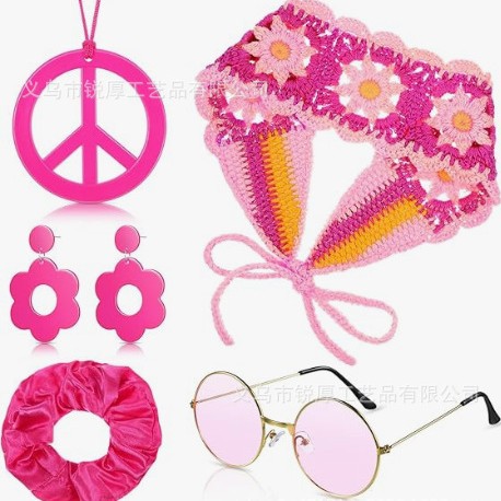 ハロウィンカーニバルヒッピー衣装アクセサリーボヘミアンニットヘッドバンドピースラベルネックレスイヤリングセット