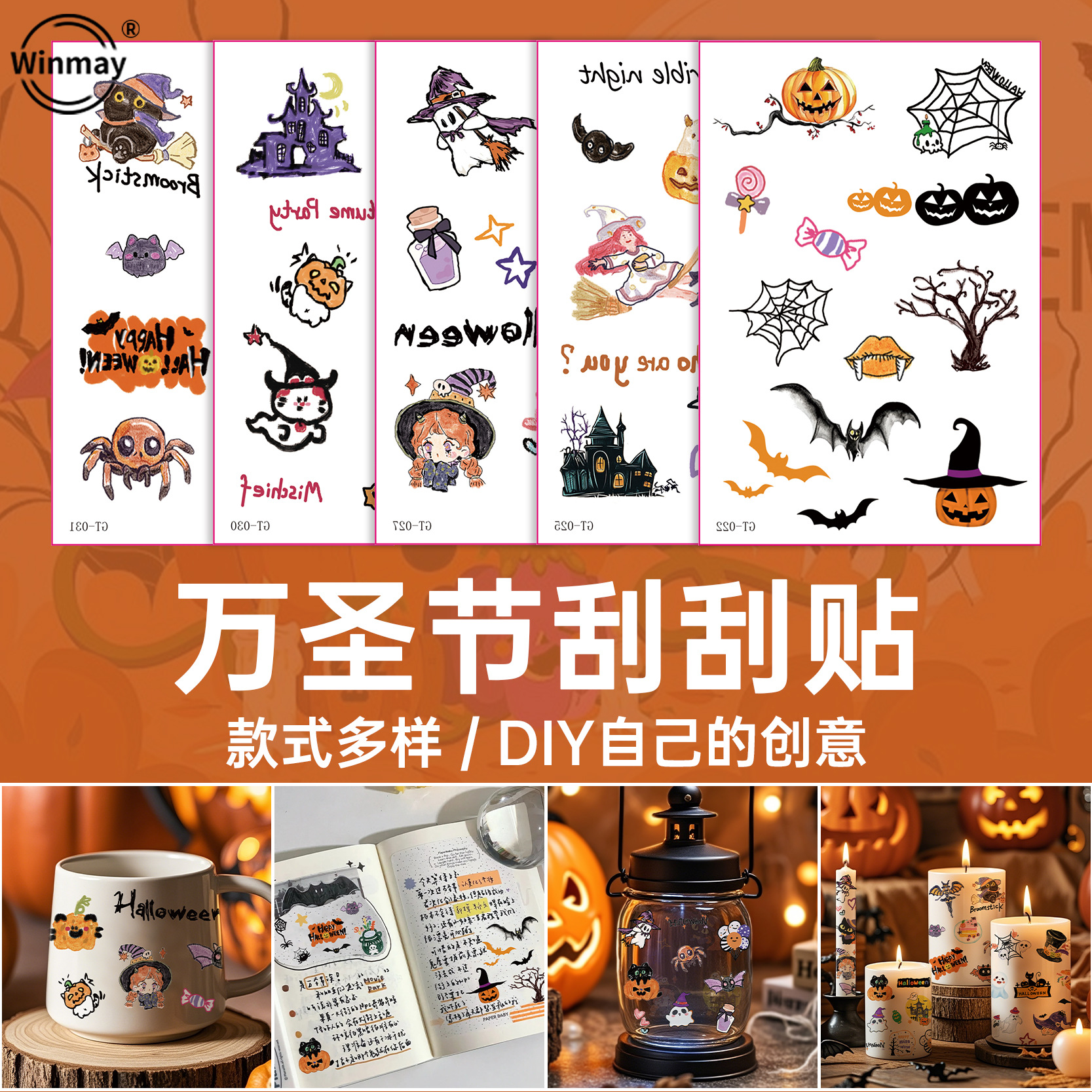 工場の新しいスポット卸売スクラッチオフステッカーハロウィン漫画ステッカークリエイティブスポーツウォーターカップキャンドルハンドブックステッカー