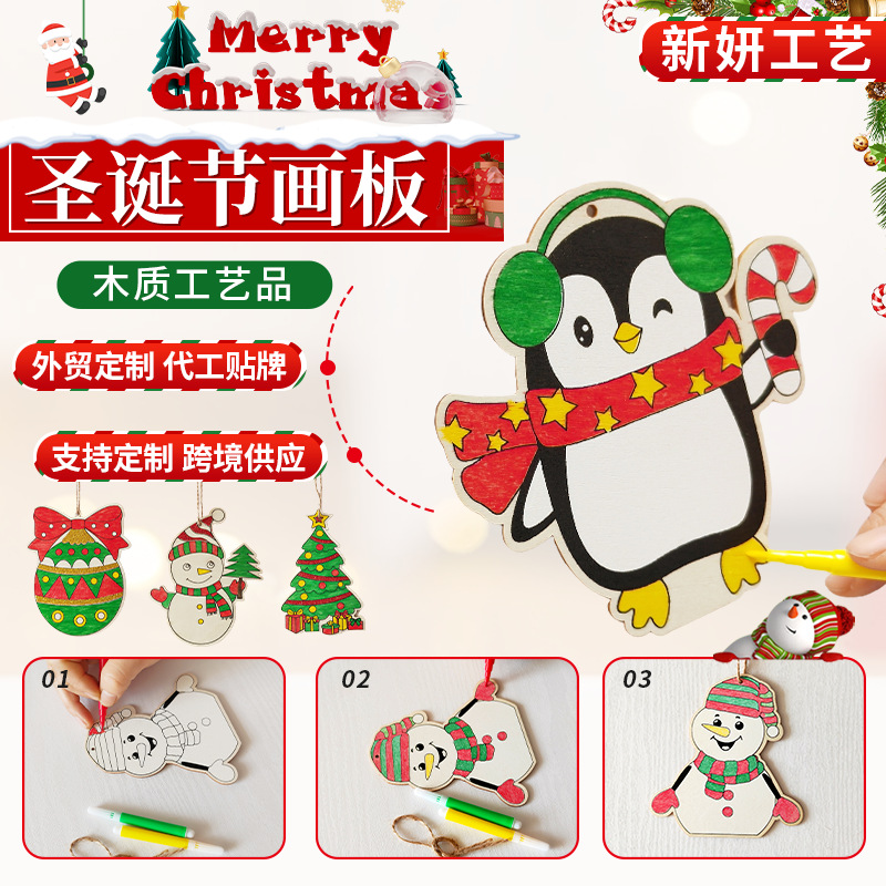 クロスボーダークリスマスDIY漫画カラー木製小画板クリエイティブ落書き板吊り下げ装飾パーティーアレンジ