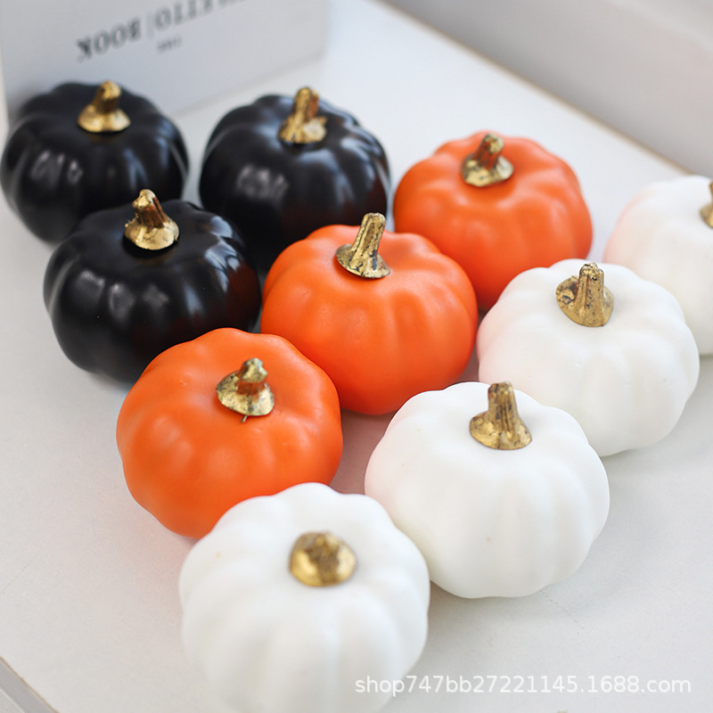 ハロウィーンのカボチャの置物祭りの雰囲気シーン装飾オレンジ色の黒い白い緑の大きなカボチャの置物材料