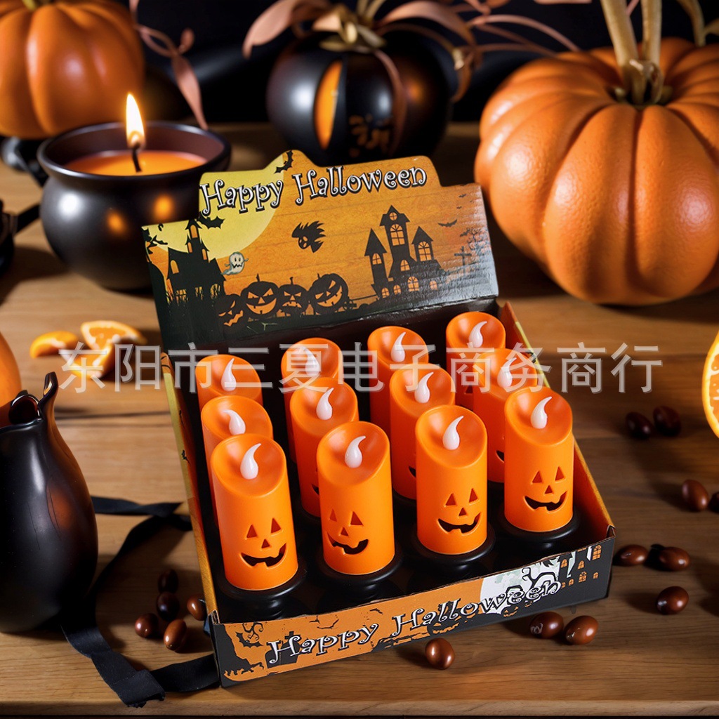 ハロウィーンled電子キャンドルランプ鬼節装飾道具レトロ水晶テーブルセット小夜灯カボチャランプ卸売り
