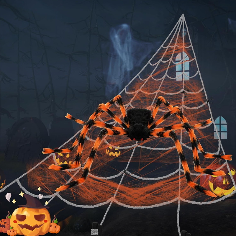ハロウィーン装飾オレンジ色のクモシミュレーション大クモ道具シーン雰囲気クモの巣配置用品大振り子