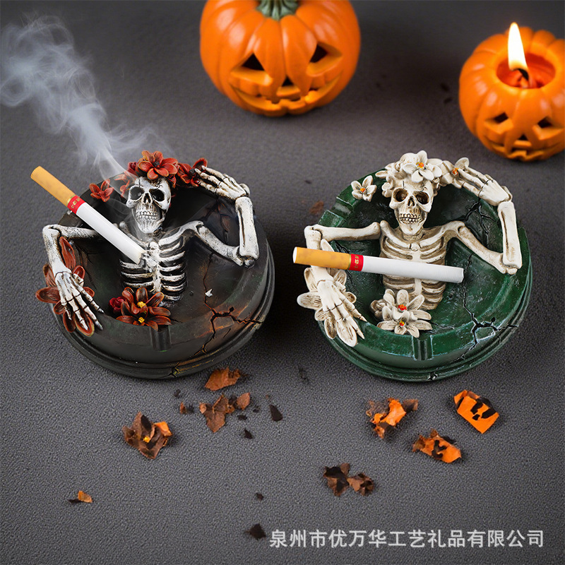 ハロウィンフラワー スカル灰皿 メンズ向け おしゃれでクールなギフト レジン製卓上飾り ホームデコレーション