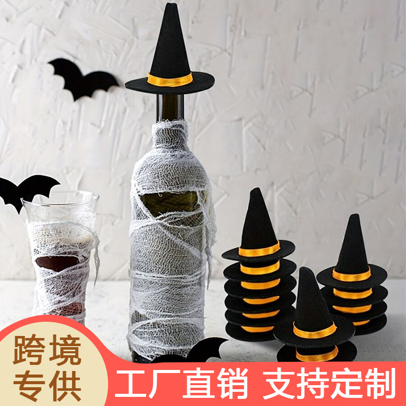 新型国境を越えた魔女帽ハロウィーンの少女魔女帽国境を越えた創造的な酒瓶装飾フェルト魔女帽