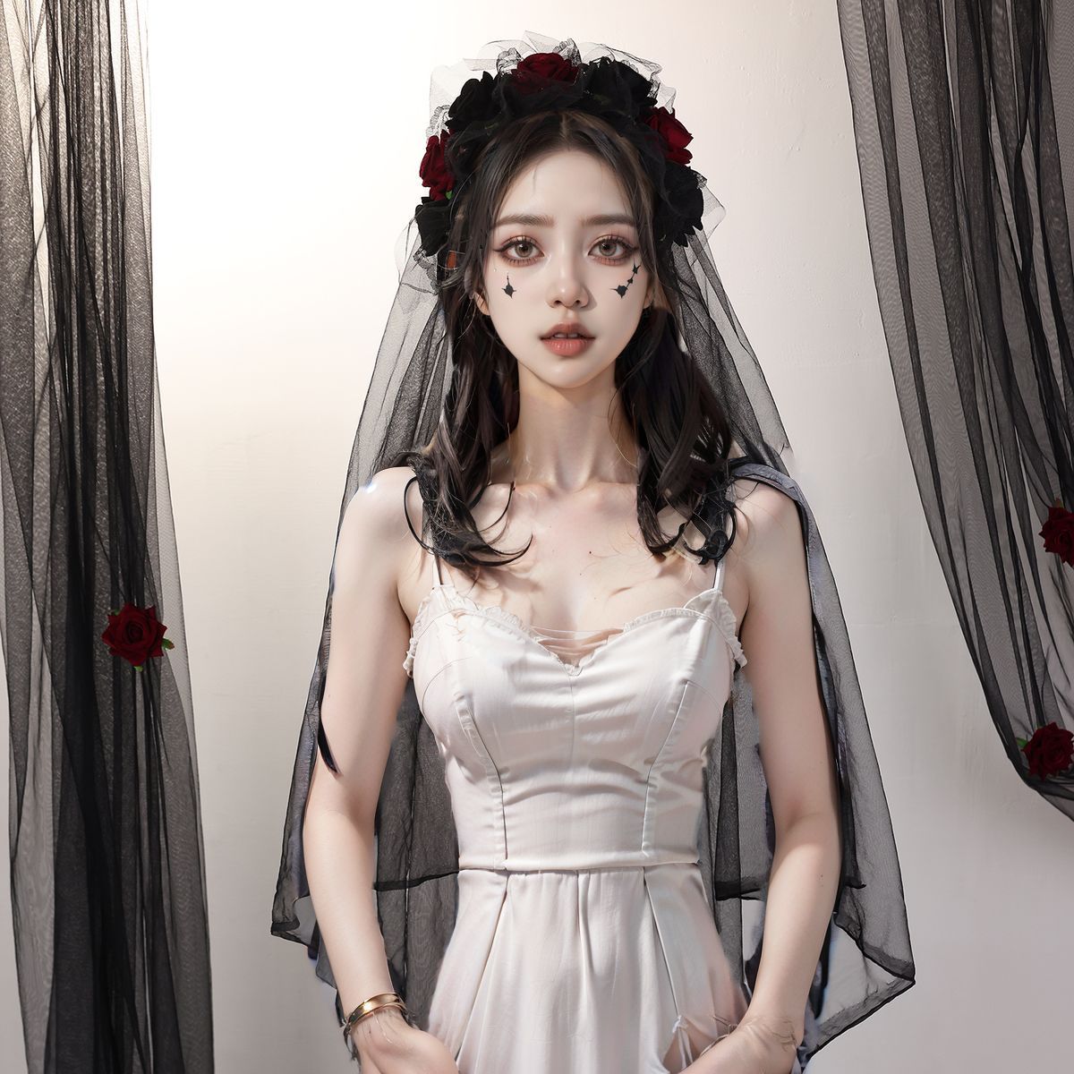 ハロウィンホラーローズスカルハンドブラックガーゼ帽子死者の日魔女ヘアフープホリデーパーティーヘアアクセサリー装飾