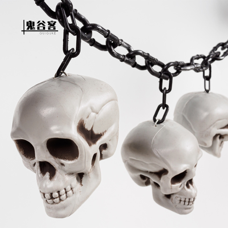 ハロウィーンのチェーンのスカルの頭はクロスボーダーのバーの密室のお化け屋敷のホラーのシーンの装飾の配置の道具の掛け物をつなぎます。