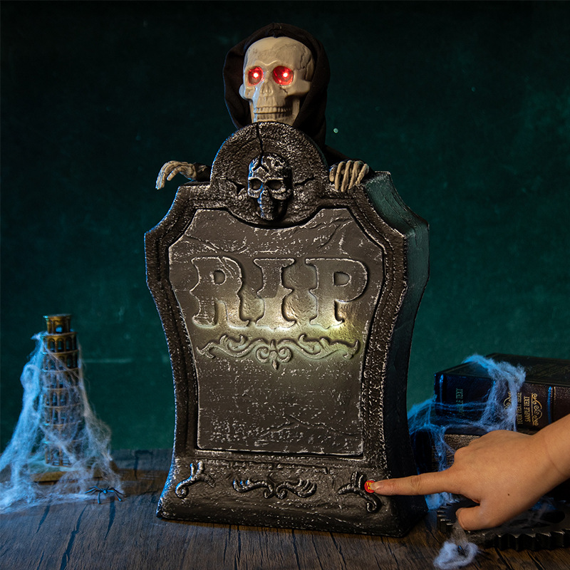国境を越えたハロウィーンの恐怖の墓石の置物が昇降して光る墓石の発光の音の墓石の鬼節の装いの道具