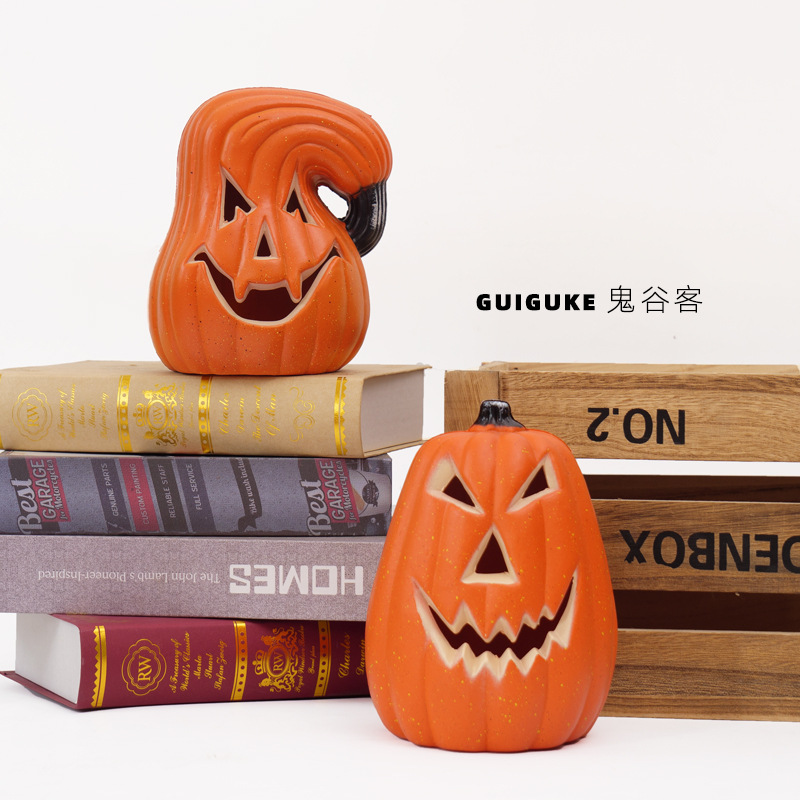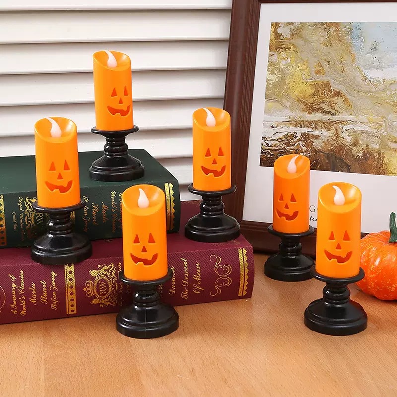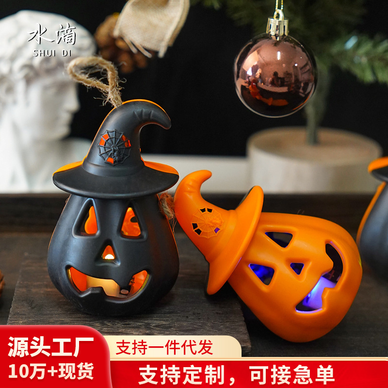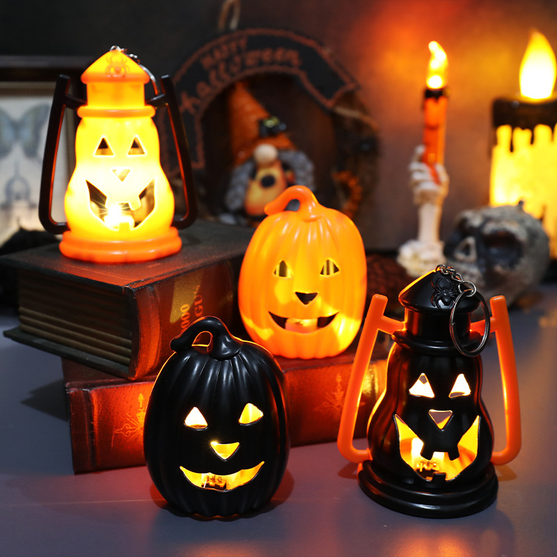 ハロウィーンカボチャランプ新装飾燭台風灯LED電子ろうそくランプ創意ランプ置物小夜灯