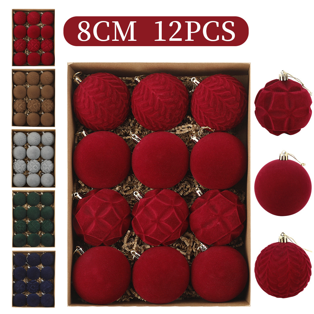 Chenlin 新しいベルベットボール植毛クリスマスツリーペンダントワインレッドダークグリーンクリスマス装飾 8 センチメートル/12 個クリスマスボール