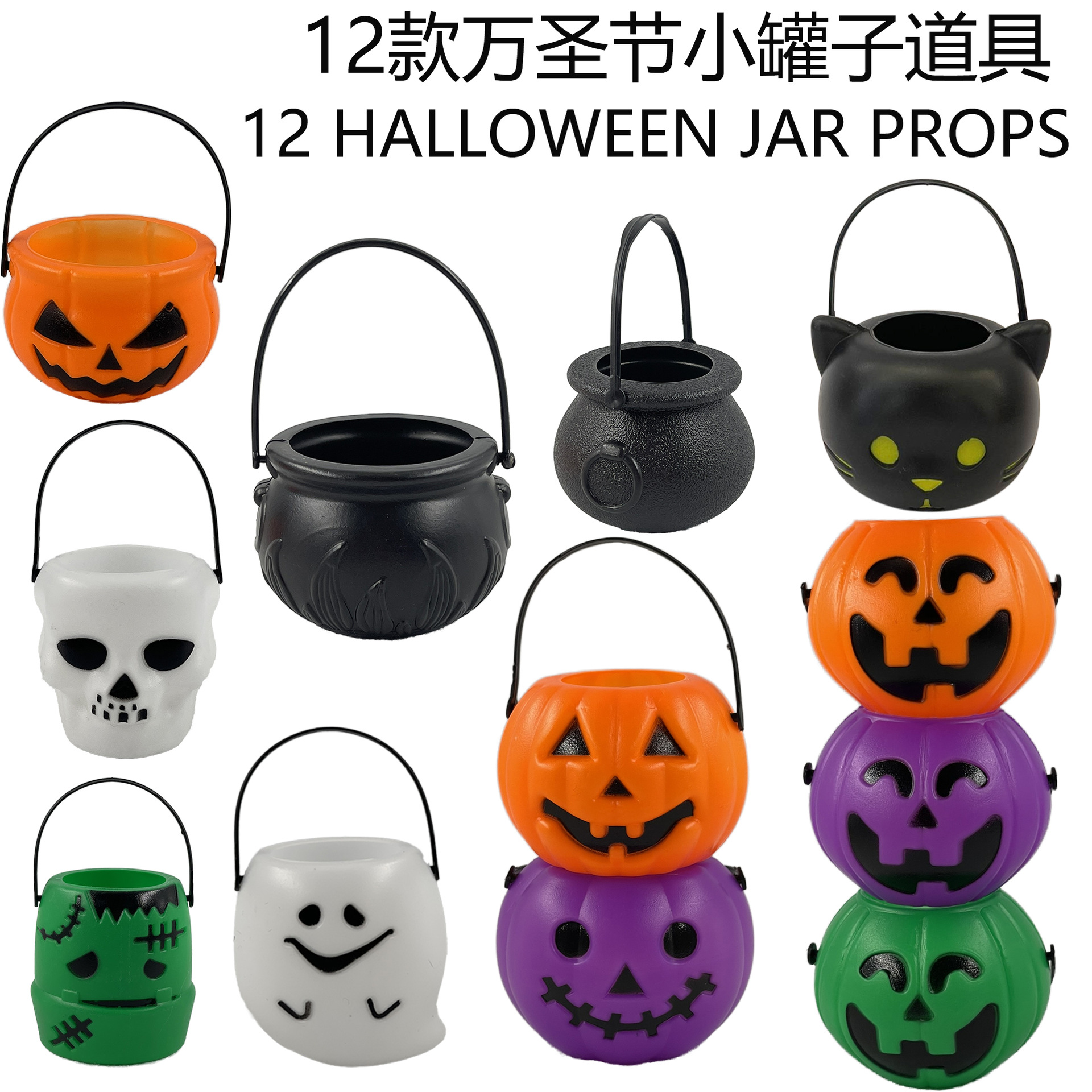 カボチャ缶魔女桶魔女缶紫色悪魔桶緑モンスター桶白い幽霊缶頭蓋キャンディー缶