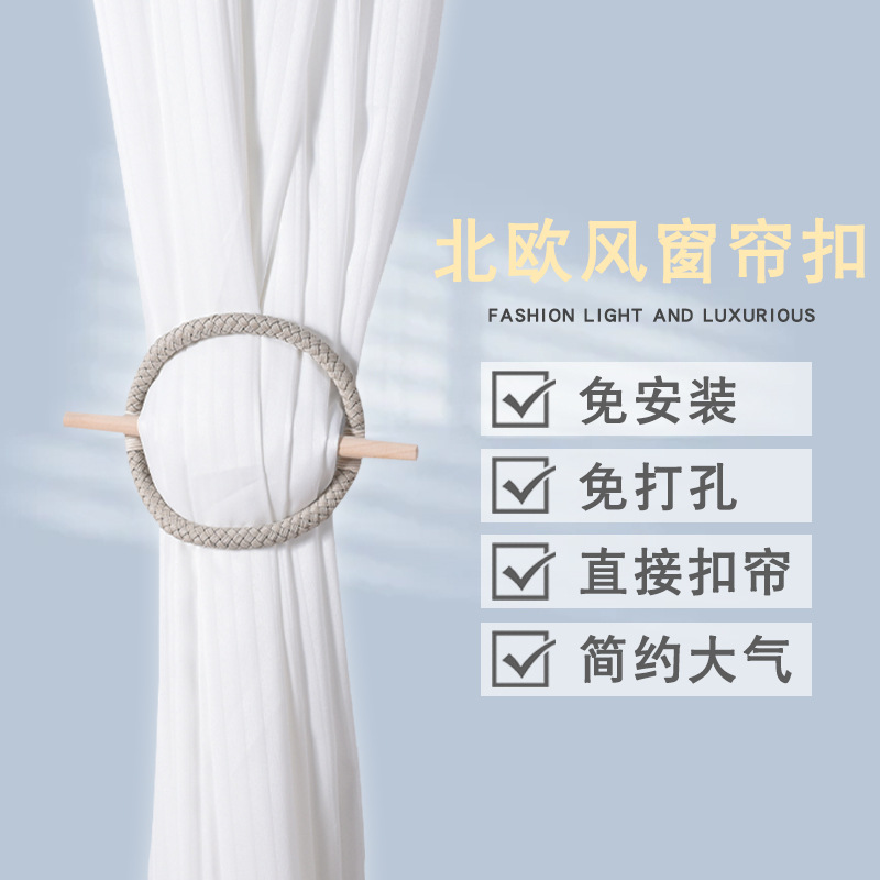 北欧風のカーテンのストラップは穴を開けない木製のカーテンのストラップを持っています。