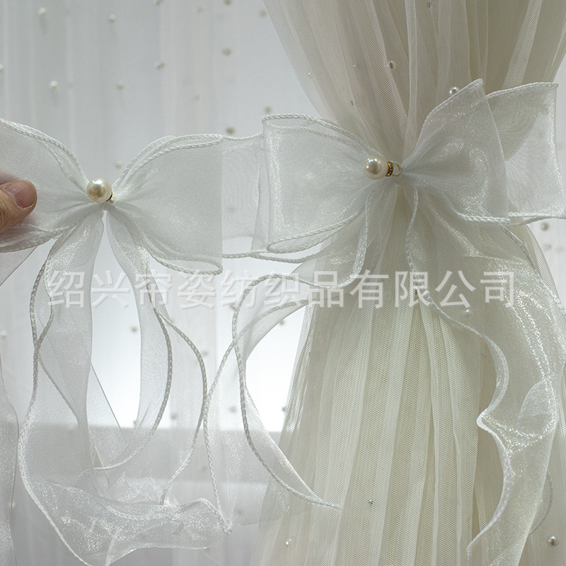 2024新型カーテンはフレンチレースの紐のガーゼの蝶結びの収納の紐を縛ってカーテンのボタンを結びます。