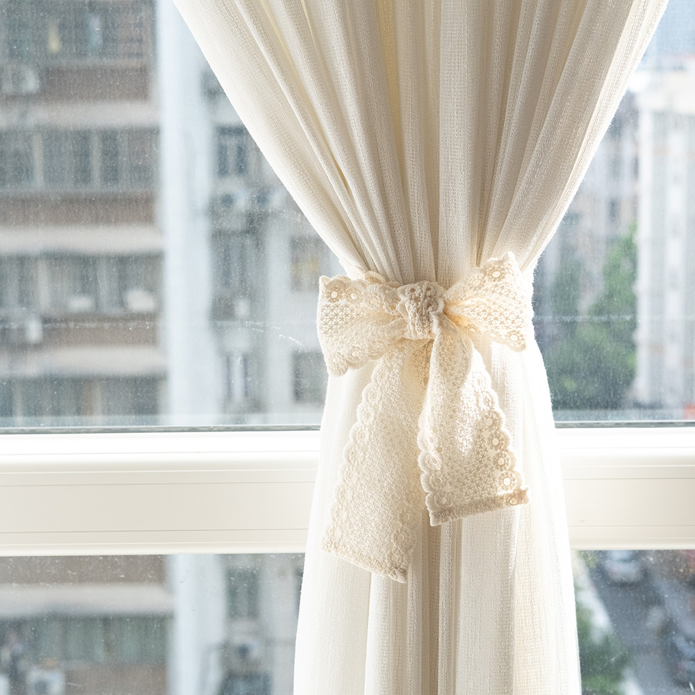 レースカーテンの窓のガーゼのバンドは純白のベージュ色のシンプルで優雅なフランス式の装飾帯の手作りのリボンの蝶結びです。