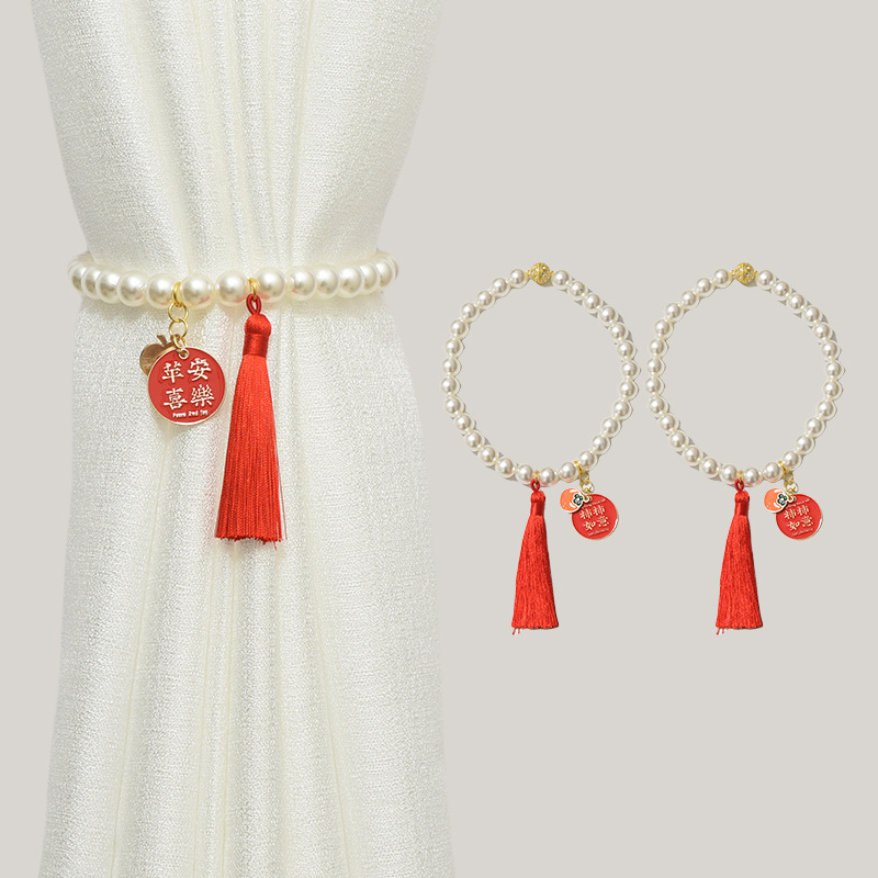 新しい平安と喜びのタッセルパールカーテン磁気バックルストラップ中国風のカーテンと窓スクリーンアクセサリー磁気バックル