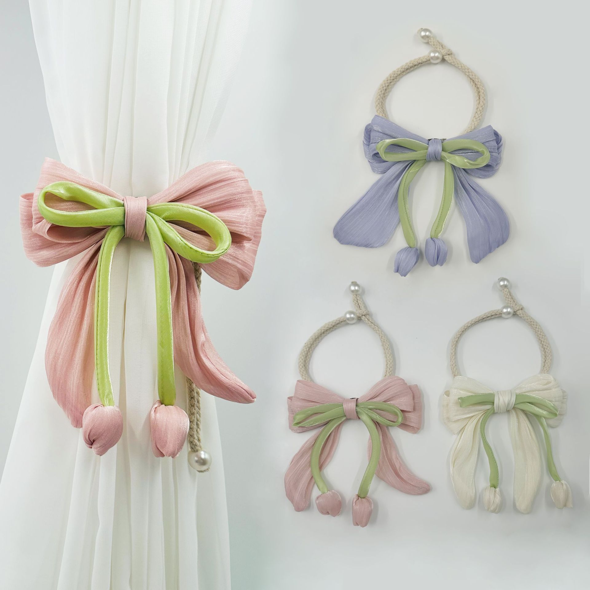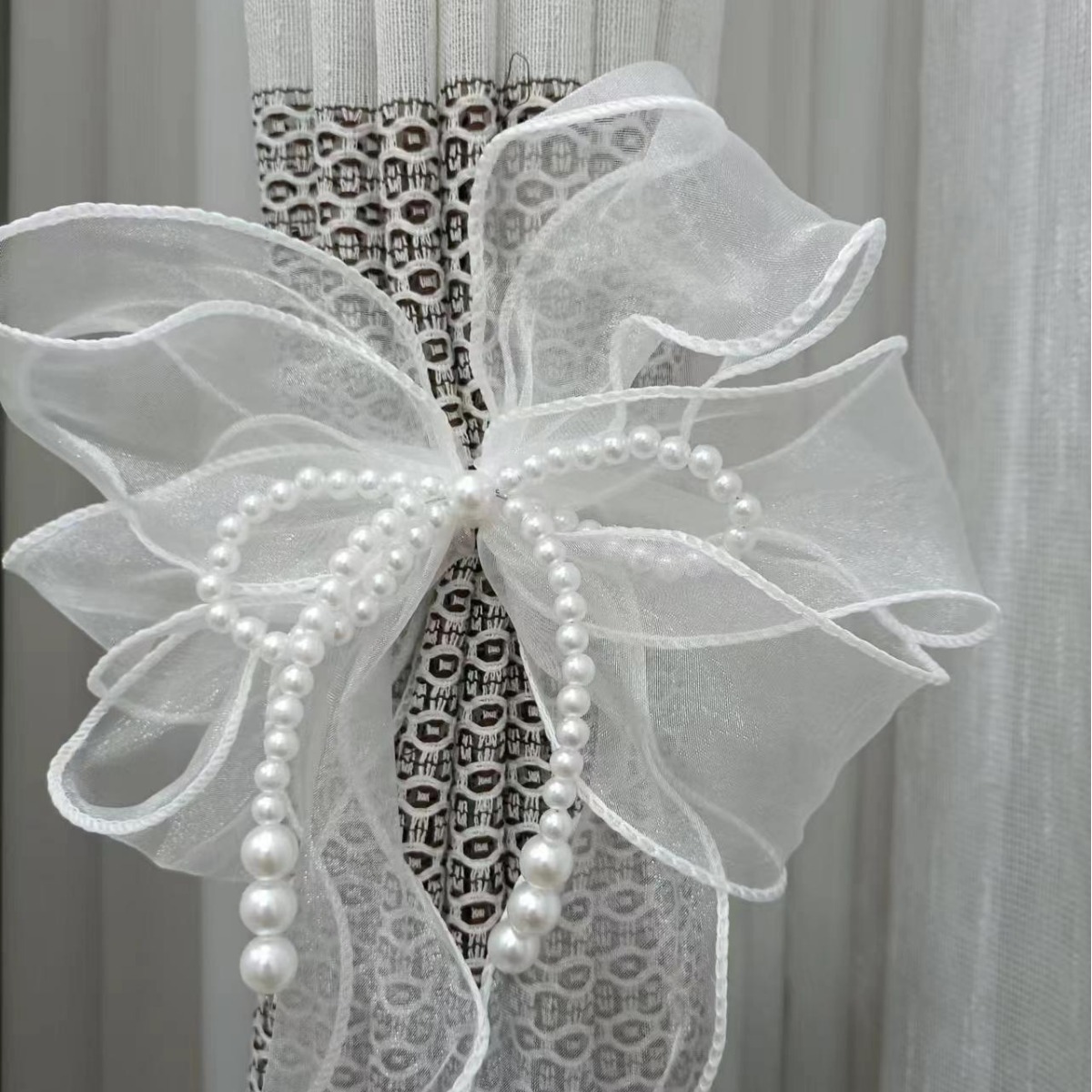 アンドロメダの蝶結びのカーテンのストラップのペアは、贅沢なフランスのガーゼのストラップを持っています。