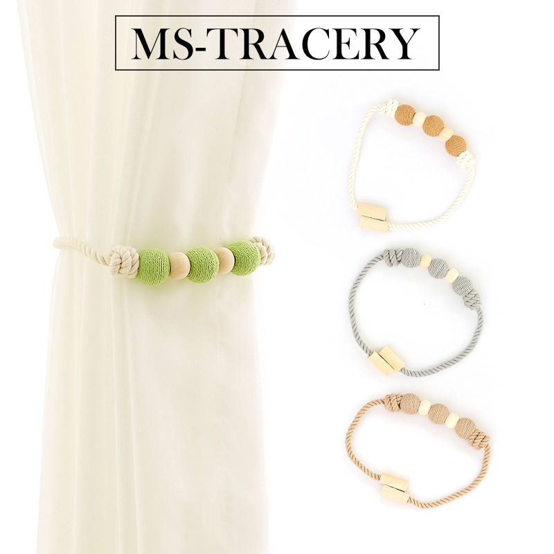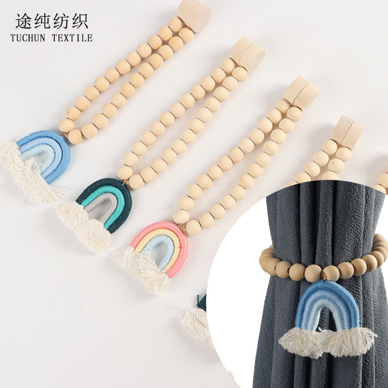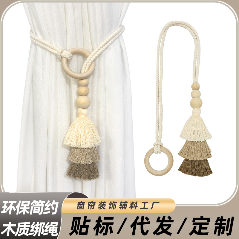 カーテンの紐は木の輪のビーズを縛って北欧の紐を縛ります。