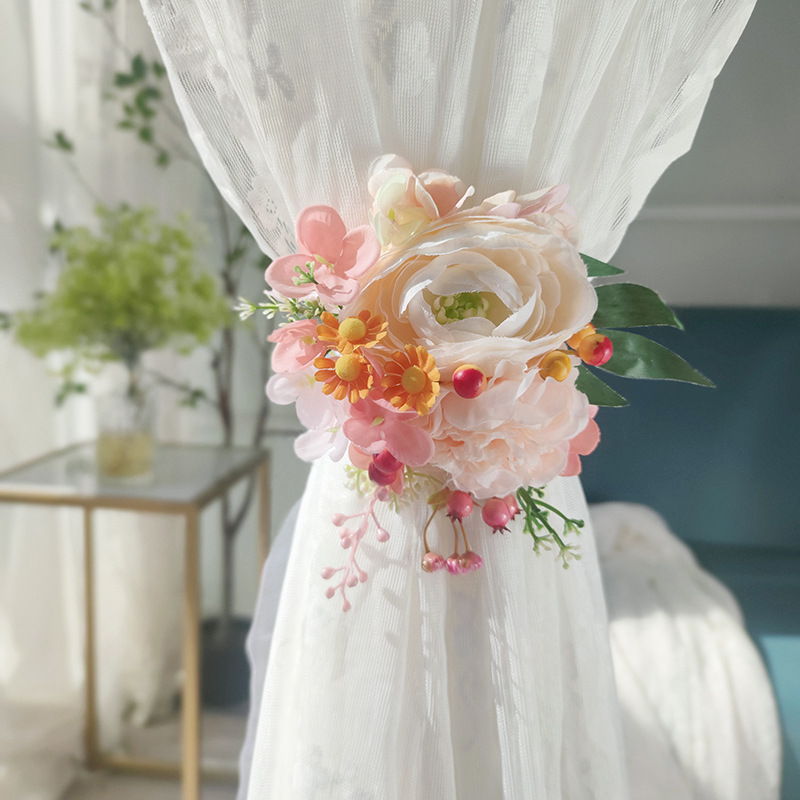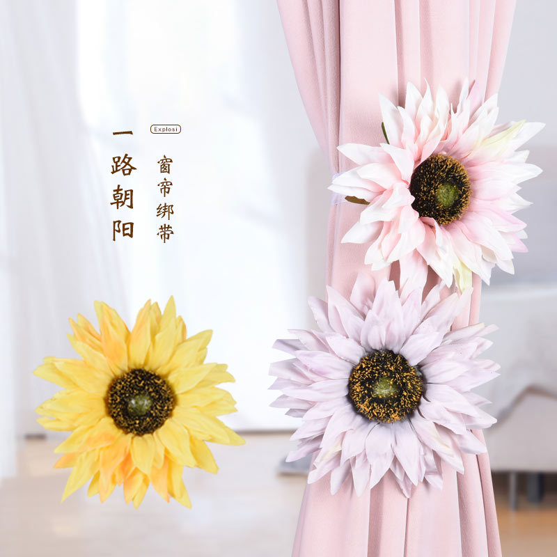 クロスボーダー特別スポットモダンシンプルシルクデイジーフラワーストラップパンチフリーカーテンバックルカーテンストラップ