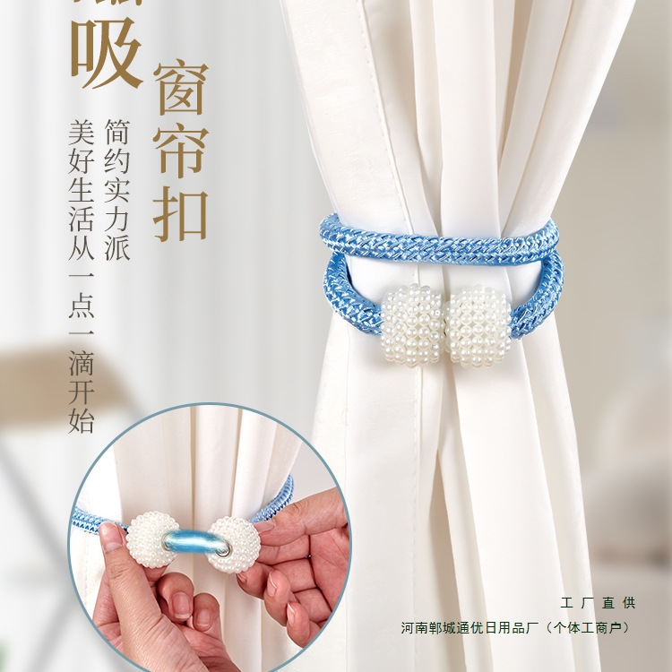 現代のシンプルな穴なしの真珠のカーテンの磁気ボタンのストラップの現物のカーテンの磁気ボタンのカーテンのバンドのペアの服