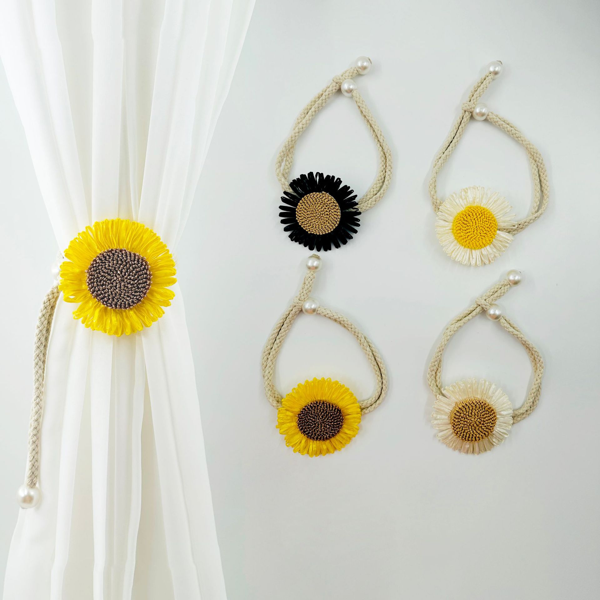 ラフィアひまわりカーテンストラップ、小さなデイジーカーテンストラップ、軽くて豪華な織カーテン収納ストラップ