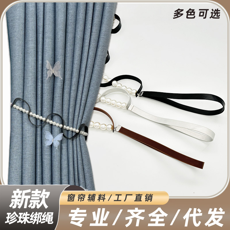 カーテンのストラップは軽くて豪華で高級な真珠の蝶結びのカーテンのボタンの磁気は窓の紗を吸い込みます。