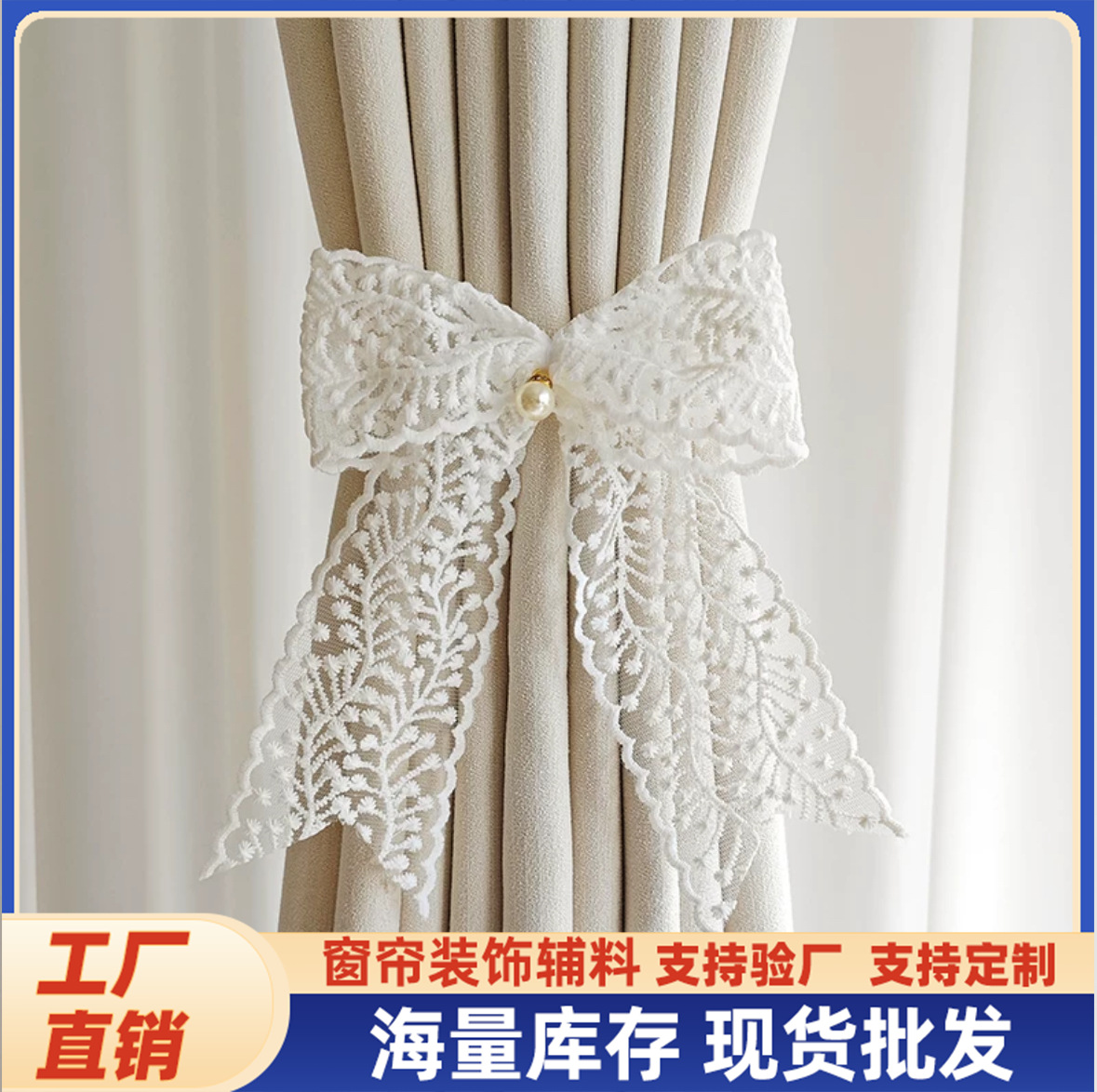 2024新型カーテンはフレンチレースの紐のガーゼの蝶結びの収納の紐を縛ってカーテンのボタンを結びます。