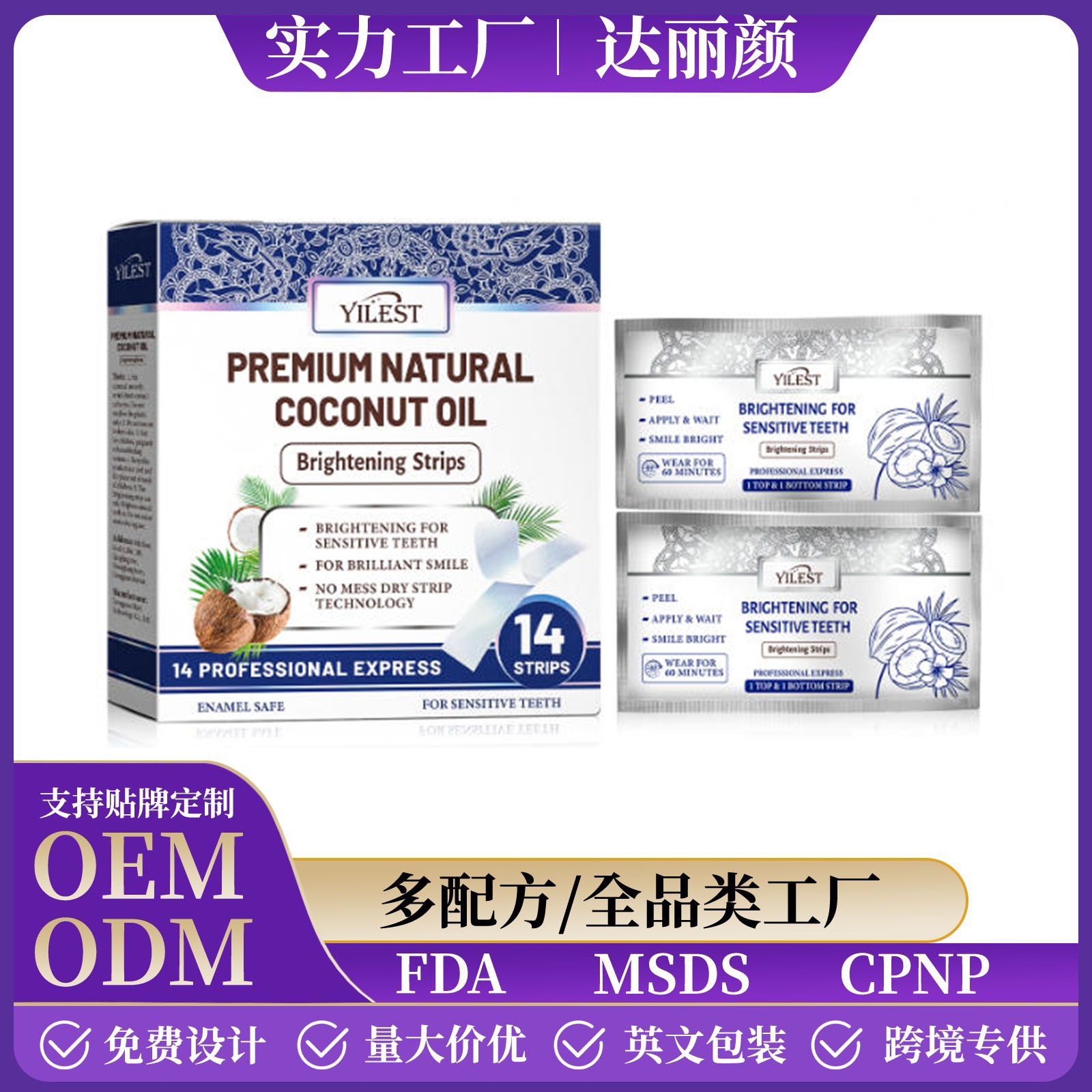 越境販売の英語対応TK人気商品ココナッツオイルホワイトニングストリップ、歯を白くするココナッツオイルホワイトニングストリップ