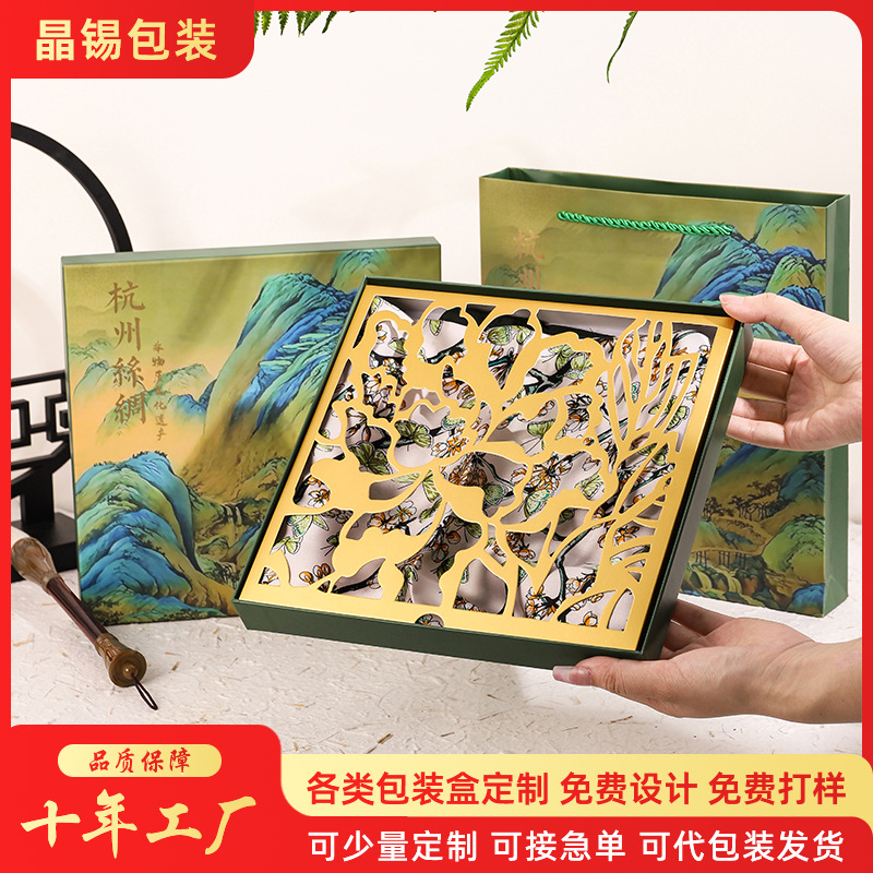 天地蓋贈答品包装箱カスタムレーザー透かしデザイン紙箱新中国式シルクタオル礼箱高級感国風