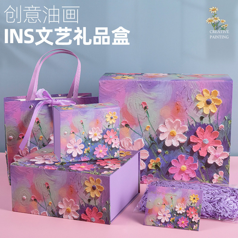油絵風ギフトボックス誕生日ギフトボックス祝日ギフトボックス上品紫色包装ボックス大サイズ空箱靴箱