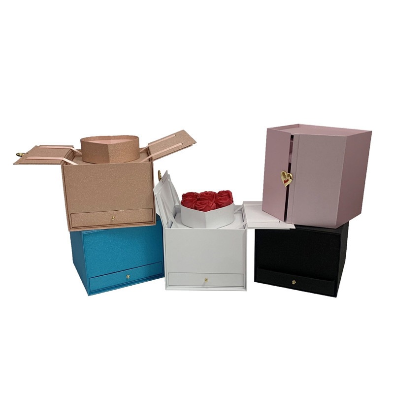 正方形のサプライズ昇降宇宙箱二重引き出し誕生日ギフトボックスハート型透かし彫り花バレンタインデーお土産